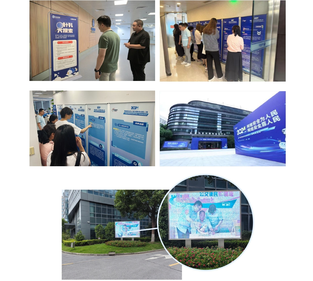 依托云工會(huì)平臺(tái)開(kāi)展以網(wǎng)絡(luò)安全宣傳為主題的線(xiàn)上學(xué)習(xí)活動(dòng),圍繞《網(wǎng)絡(luò)安全法》《數(shù)據(jù)安全法》等5個(gè)主題開(kāi)展知識(shí)競(jìng)答,激發(fā)員工學(xué)習(xí)網(wǎng)絡(luò)安全知識(shí)的積極性,檢驗(yàn)提升員工的網(wǎng)絡(luò)安全防護(hù)水平。線(xiàn)下設(shè)置網(wǎng)絡(luò)安全宣傳展板、海報(bào)、LED屏幕、宣傳手冊(cè),邀請(qǐng)專(zhuān)家講課、組織培訓(xùn)、參觀(guān)展覽,設(shè)計(jì)模擬場(chǎng)景查找針孔探頭,提升員工信息安全意識(shí),筑牢個(gè)人信息安全之堤,保護(hù)企業(yè)信息安全。